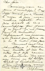 Letter from S. Alphonse Daudelin, to his father Casimir Daudelin
