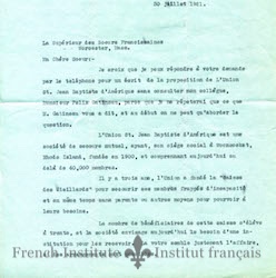 Letter from an unknown USJB representative, to La Supérieur des Soeurs Franciscaines