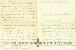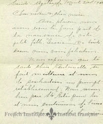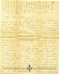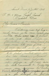 A letter S. Alphonse Daudelin wrote to his parents Casimir Daudelin and Flavie Thibeault documenting a trip to New York City, 12 October 1896. Written while traveling back north, it details the sights seen in New York City, as well as the return voyage- including stops at various New England cities.
