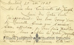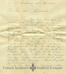 A letter to Dr. Daudelin, from Ferdinand Gagnon's widow Malvina Lalime. In the letter she expresses her gratitude for the memorial planned for her late husband.
