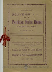 A souvenir program of Notre Dame Parish. It was produced in recognition of a visit from friends, as well as a Union Saint-Jean-Baptiste congress held in Holyoke.