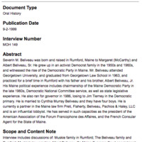 L'Hommedieu, Andrea, "Beliveau, Severin oral history interview" (1999). Edmund S. Muskie Oral History Collection. 24. https://scarab.bates.edu/muskie_oh/24