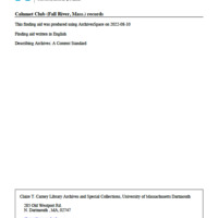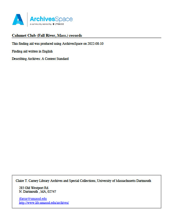 Calumet Club (Fall River, Mass.) records, MC 137. Franco American Historical Collections, Claire T. Carney Library Archives and Special Collections, University of Massachusetts Dartmouth.
