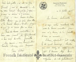 - en This letter remained in the Sansoucy - Harpin family, and was passed down to Jacqueline Lessard Finn, the daughter of Antoinette Sansoucy. Finn in turn donated the letter to the French Institute at Assumption University.