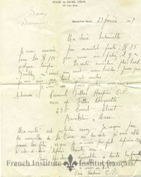 - en This letter remained in the Sansoucy - Harpin family, and was passed down to Jacqueline Lessard Finn, the daughter of Antoinette Sansoucy. Finn in turn donated the letter to the French Institute at Assumption University.