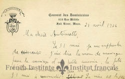 - en This letter remained in the Sansoucy - Harpin family, and was passed down to Jacqueline Lessard Finn, the daughter of Antoinette Sansoucy. Finn in turn donated the letter to the French Institute at Assumption University.