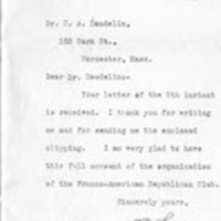 - en A letter to S. Alphonse Daudelin, from Senator Winthrop Crane.