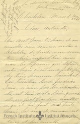 - fr Lettre de Corinne Harpin et Napoléon Sansoucy, à leur fille Antoinette Sansoucy.