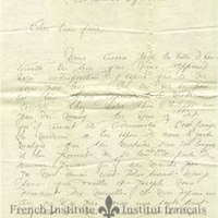 - en This letter remained in the Sansoucy - Harpin family, and was passed down to Jacqueline Lessard Finn, the daughter of Antoinette Sansoucy. Finn in turn donated the letter to the French Institute at Assumption University.