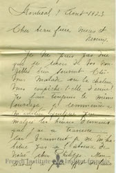 - en This letter remained in the Sansoucy - Harpin family, and was passed down to Jacqueline Lessard Finn, the daughter of Antoinette Sansoucy. Finn in turn donated the letter to the French Institute at Assumption University.
